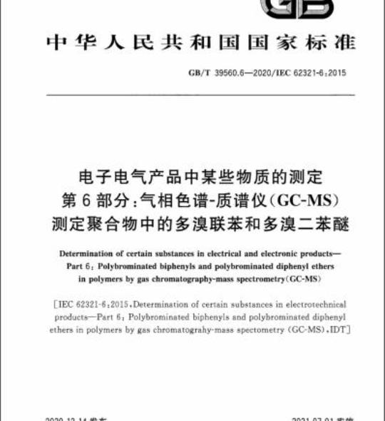 GB/T 39560.6-2020.Determination of certain substances in electrical and electronic products-Part 6: Polybrominated biphenyls and polybrominated diphenyl ethers in polymers by gas chromatography-mass spectrometry(GC-MS).