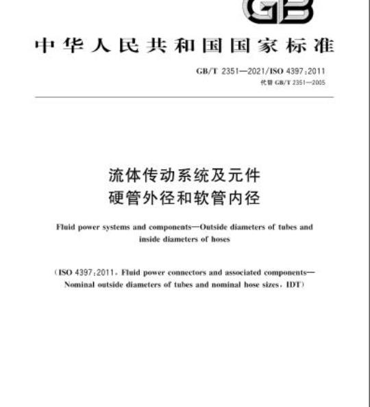 GB/T 2351规定了在流体传动系统及元件中使用的刚性或半刚性硬管公称外径及软管公称内径尺寸系列: