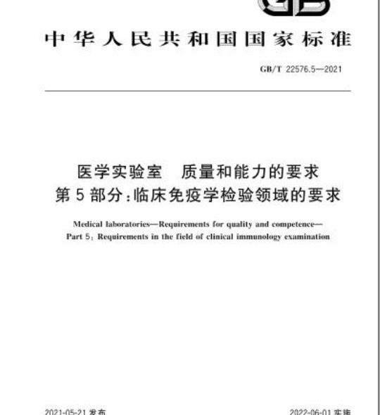 GB/T 22576.5-2021.Medical laboratories-Requirements for quality and competence-Part 5: Requirements in the field of clinical immunology examination.