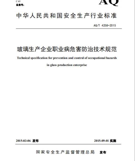 AQ/T 4258规定了玻璃生产企业职业病危害防治的技术要求、措施和管理。