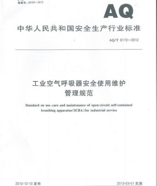 AQ/T 6110-2012.Standard on use , care and maintenance of open-circuit self-contained breathing apparatus(SCBA)for industrial service.