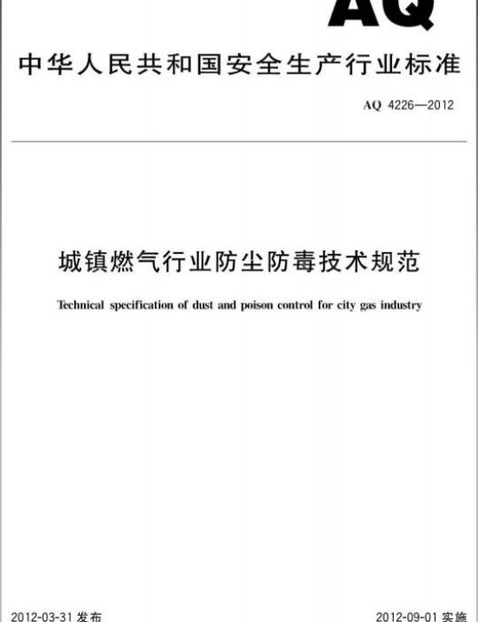 AQ 4226-2012.Technical specification of dust and poison control for city gas industry.