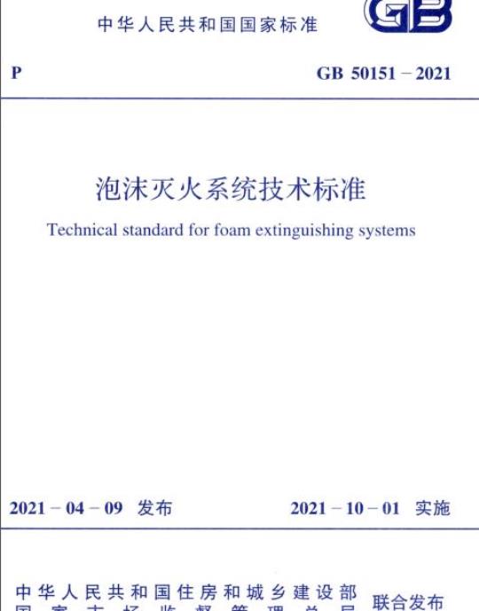 Technical standard for foam cxtinguishing systemsGB50151-2021