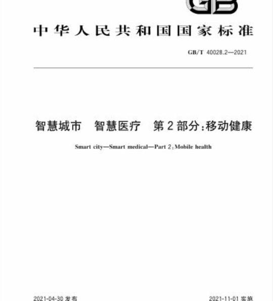 GB/T 40028的本部分规定了智慧城市领域内智慧医疗中的移动健康在平台、网络.感知层设备、安全和管理等方面的要求。