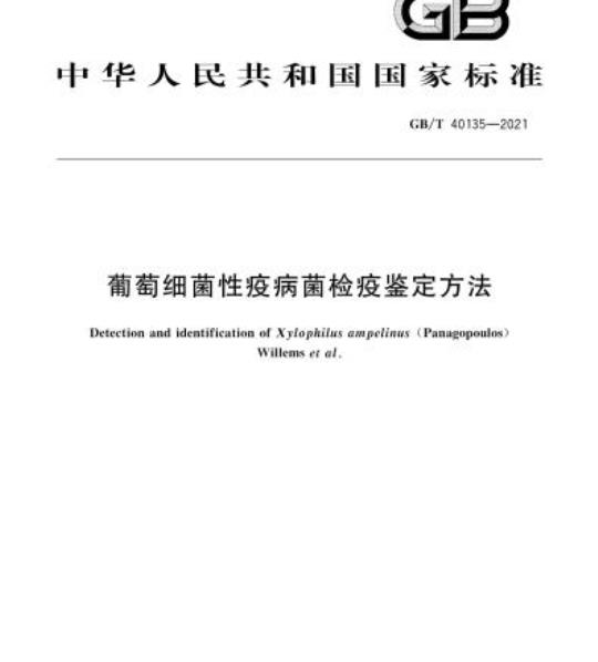GB/T 40135适用于葡萄及其繁殖材料中葡萄细菌性疫病菌的检疫和鉴定。