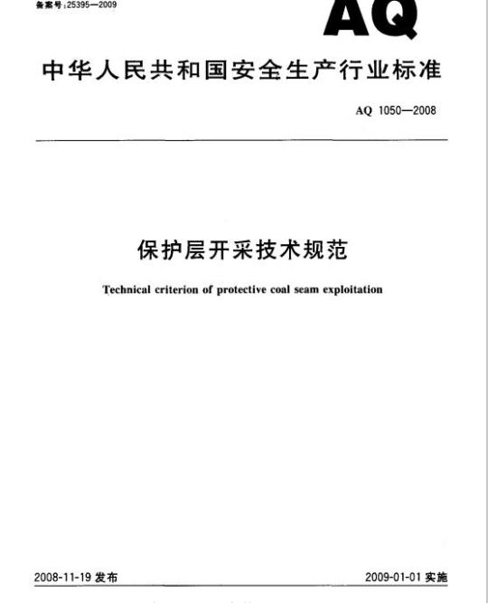 AQ 1050规定了煤矿保护层开采的一般要求、规划、设计、瓦斯抽采、效果考察和区域性消除突出危险性评定方法。
