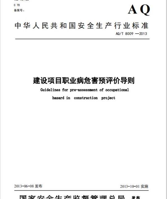 AQ/T 8009-2013.Guidelines for pre: -assessment of occupational hazard in construction project.