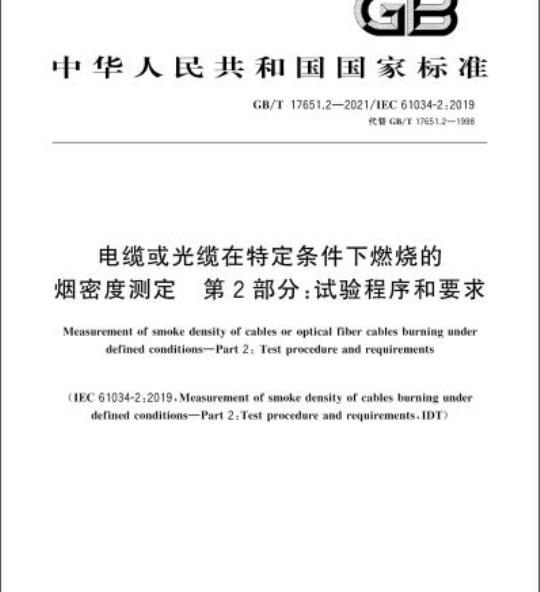 GB/T 17651.2-2021.Measurement of smoke density of cables or optical fiber cables burning under defined conditions-Part 2: Test procedure and requirements.