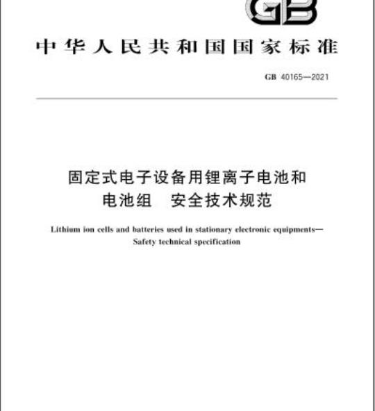GB 40165规定了固定式电子设备用锂离子电池和电池组的安全要求,以及试验方法。