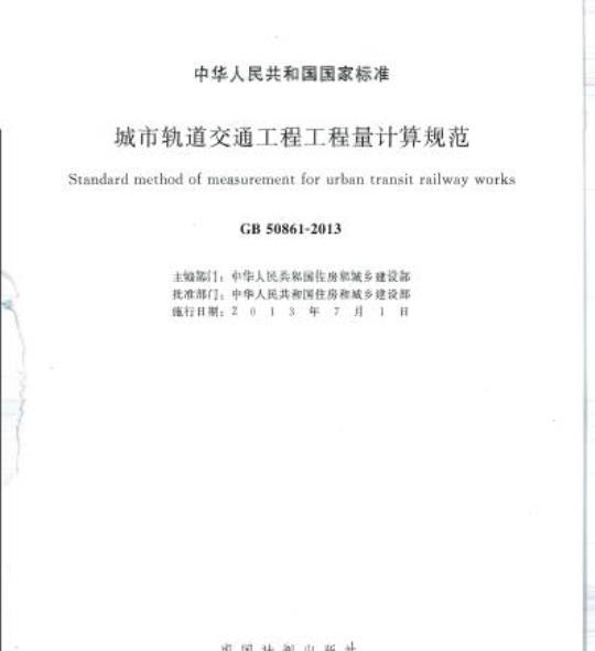 城市轨道交通工程工程量计算规范Standard method of measurement for urban transit railway worksGB50861-2013