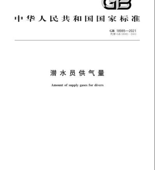 GB 18985适用于潜水员使用通风式.水面供气需供式、自携式潜水装具,进行的空气潜水、混合气潜水、邦司潜水和饱和潜水作业。