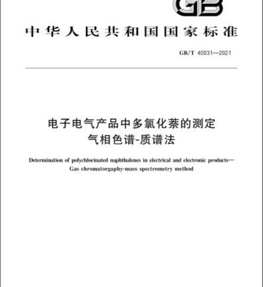 GB/T 40031规定了电子电气产品中多氯化萘含量的气相色谱质谱检测方法。