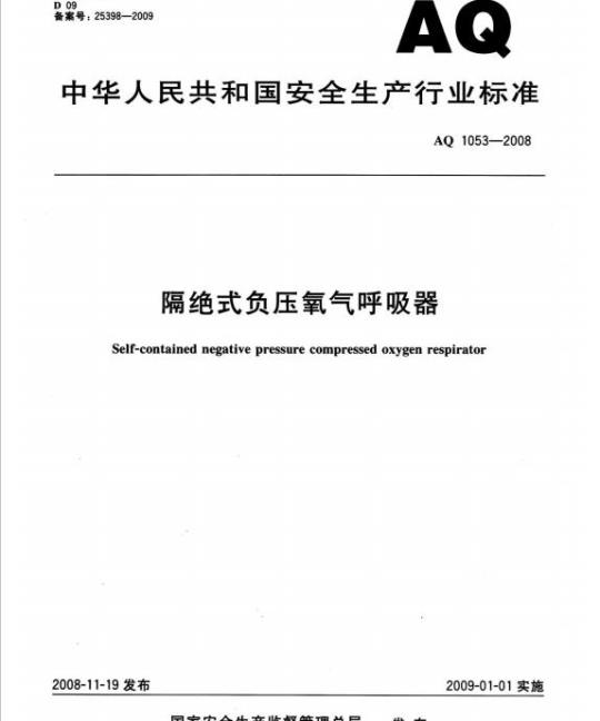AQ 1053-2008.Self-contained negative pressure compressed oxygen respirator.