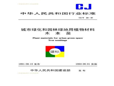 CJ/T 34-1991 城市绿化和园林绿地用植物材料木本苗CJ/T34-91 CJ/T34-1991 标准下载解压密码:www.bzxz.net