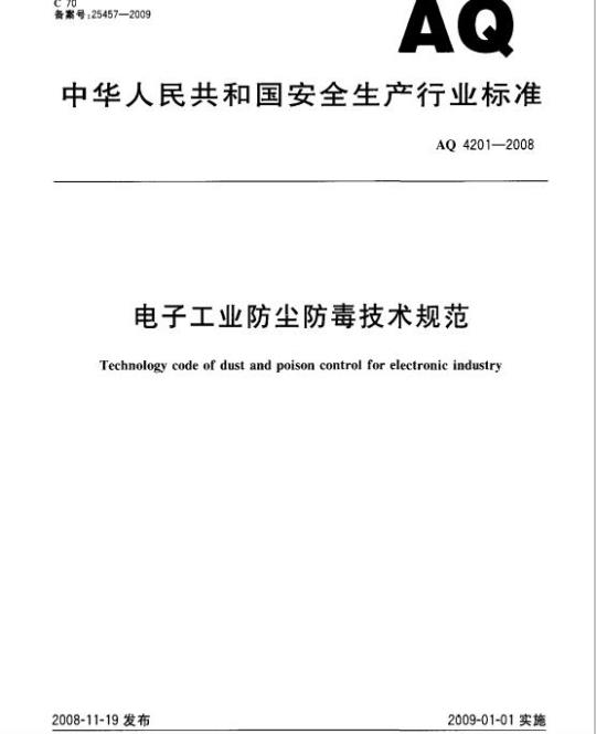 AQ 4201-2008.Technology code of dust and poison control for electronic industry.