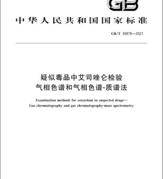 GB/T 39878-2021.Examination methods for estazolam in suspected drugs一Gas chromatography and gas chromatography-mass spectrometry.