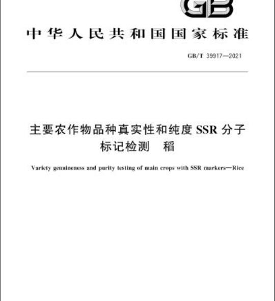 GB/T 39917规定了稻(Oryza sativa L.)品种真实性和品种纯度SSR分子标记的检测原则、检测方案、检测程序和结果报告。