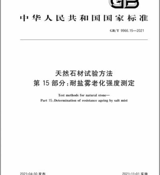 第15部分:耐盐雾老化强度测定Test methods for natural stone-Part 15:Determination of resistance ageing by salt mist2021-04-30发布