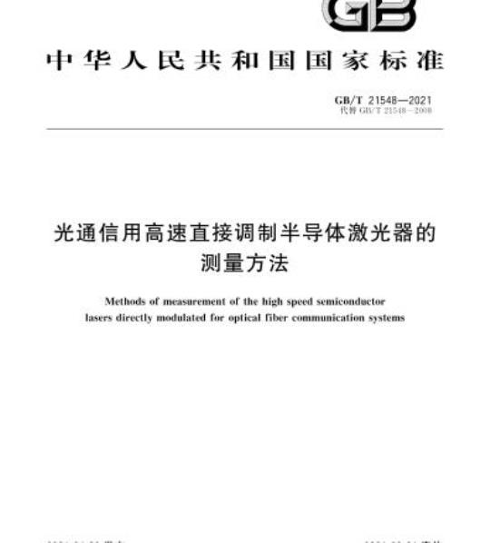 GB/T 21548规定了光通信用高速直接调制激光器及其组件的分类和测量方法。