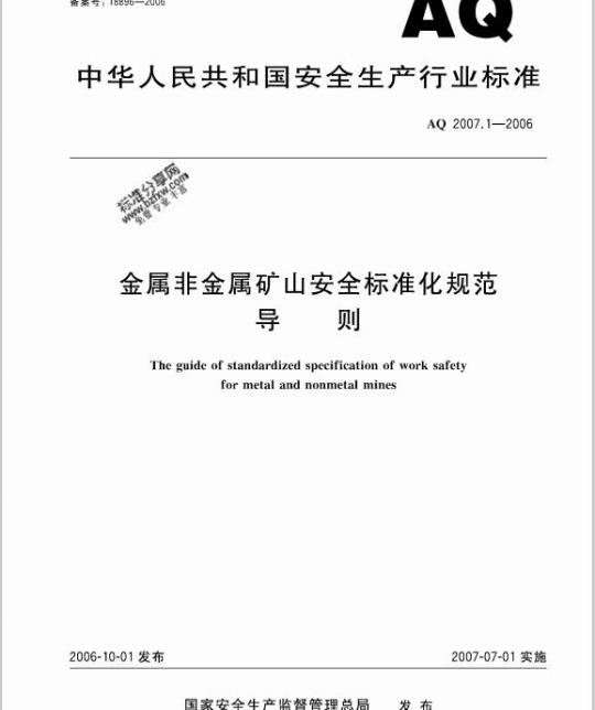 AQ 2007. 1-2006.The guide of standardized specification of work safety for metal and nonmetal mines.