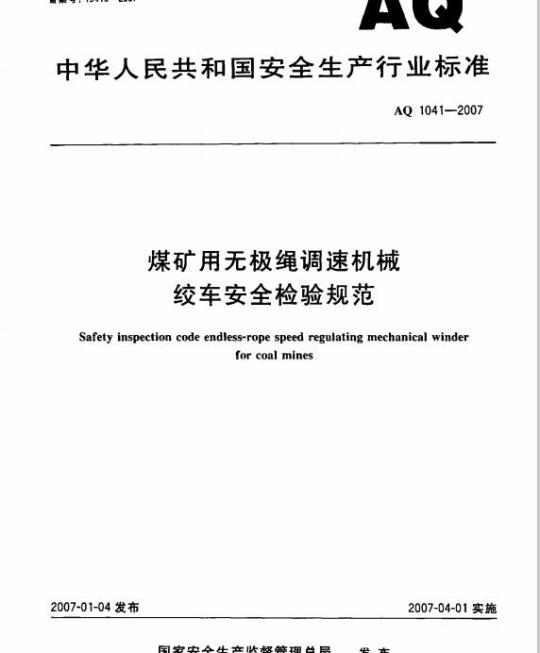 AQ 1041-2007.Safety inspection code endess-rope speed regulating mechanical winder for coal mines.