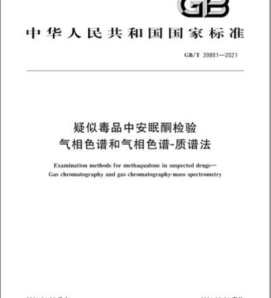GB/T 39881-2021.Examination methods for methaqualone in suspected drugs-Gas chromatography and gas chromatography-mass spectrometry.