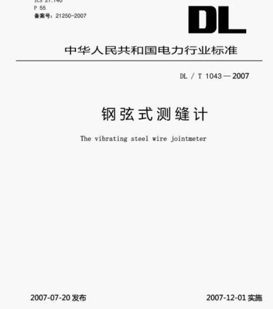 DL/T 1043规定了钢弦式测缝计的分类与规格、技术要求、试验方法、检验规则和标志、包装、运输、储存的要求。