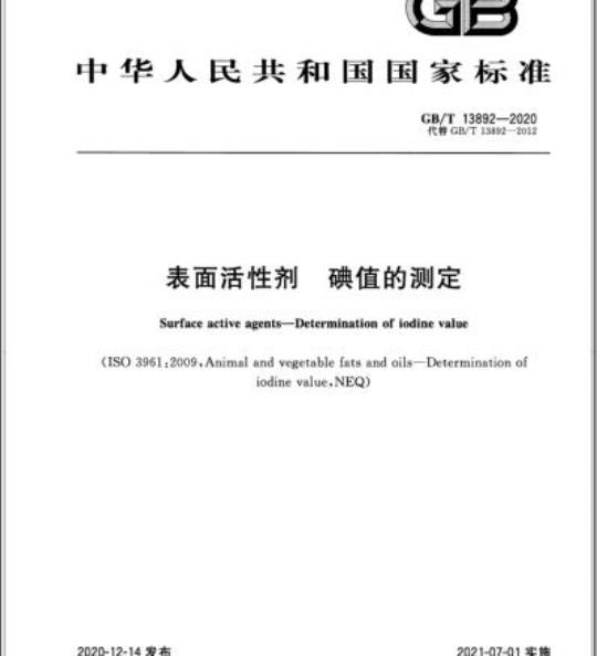 GB/T 13892-2020.Surface active agents-Determination of iodine value.
