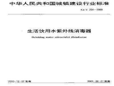 中华人民共和国城镇建设行业标准生活饮用水紫外线消毒器