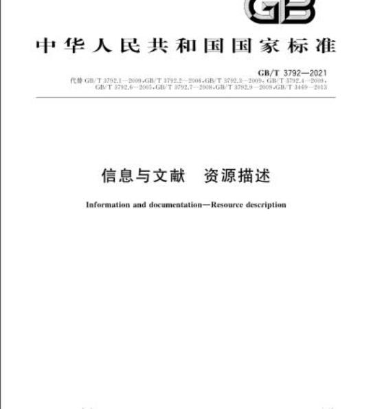 GB/T 3792给出了一整套覆盖各种类型资源的通用描述规范,规定了数据元索被记录或转录的顺序以及用于识别和显示数据元素的标识符号。