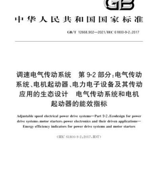 GB/T 12668.902-2021.Adjustable speed electrical power drive systems-Part 9-2: Ecodesign for power drive systems , motor starters,power electronics and their driven applications-Energy efficiency indicators for power drive systems and motor starters.