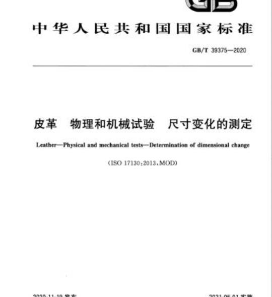 GB/T 39375-2020.Leather-Physical and mechanical tests-Determination of dimensional change.