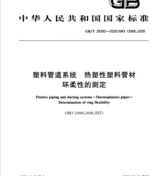 GB/T 39385-2020.Plastics piping and ducting systems-Thermoplastics pipes一Determination of ring flexibility.