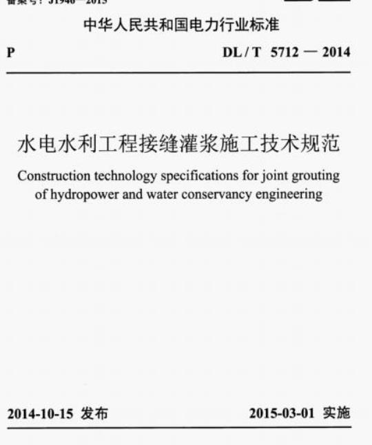 水电水利工程接缝灌浆施工技术规范Construction technology specifications for joint groutingof hydropower and water conservancy engineeringDL/T5712—2014