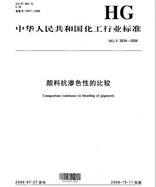 HG/T 3834规定了与标准样品对比来测定颜料抗渗色性的通用试验方法.