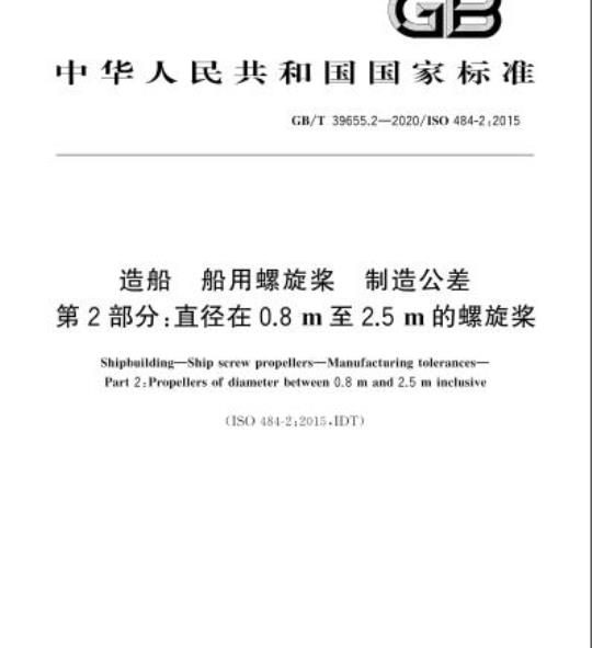 GB/T 39655.2规定了直径在0.8 m至2.5 m船用螺旋桨的制造公差。