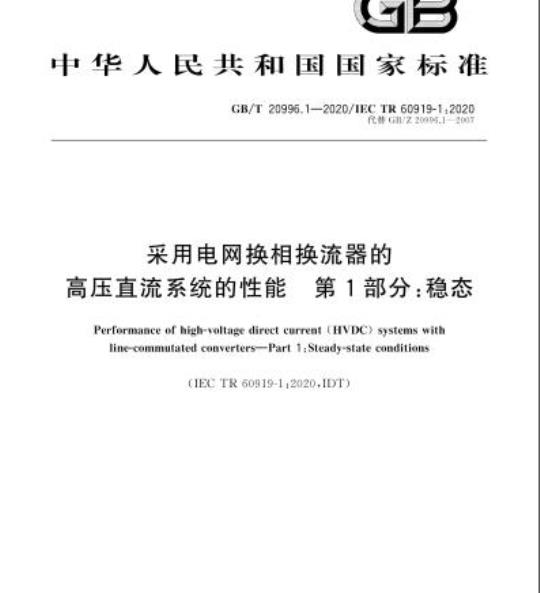 GB/T20996≤采用电网换相换流器的高压直流系统的性能》分为3个部分:第1部分:稳态;