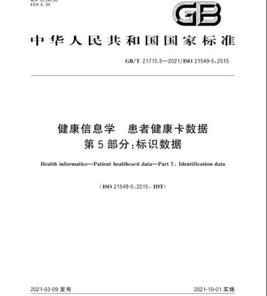 GB/T21715.5—2021/IS021549-5:2015健康信息学患者健康卡数据