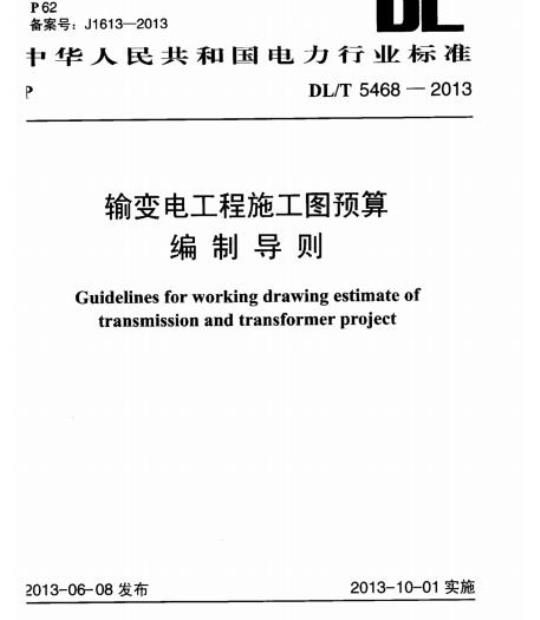 DL/T 5468-2013.Guidelines for working drawing estimate of transmission and transformer project.