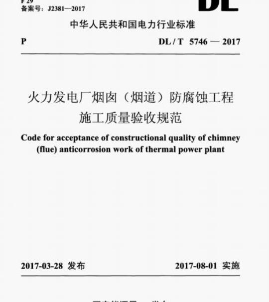 Code for acceptance of constructional quality of chimney(flue)anticorrosion work ofthermalpowerplant2017-03-28发布