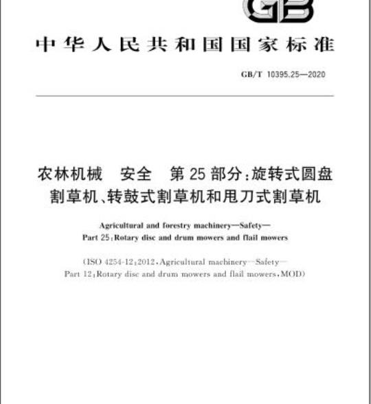 GB/T 10395.25-2020.Agricultural and forestry machinery-Safety-Part 25: Rotary disc and drum mowers and flail mowers.