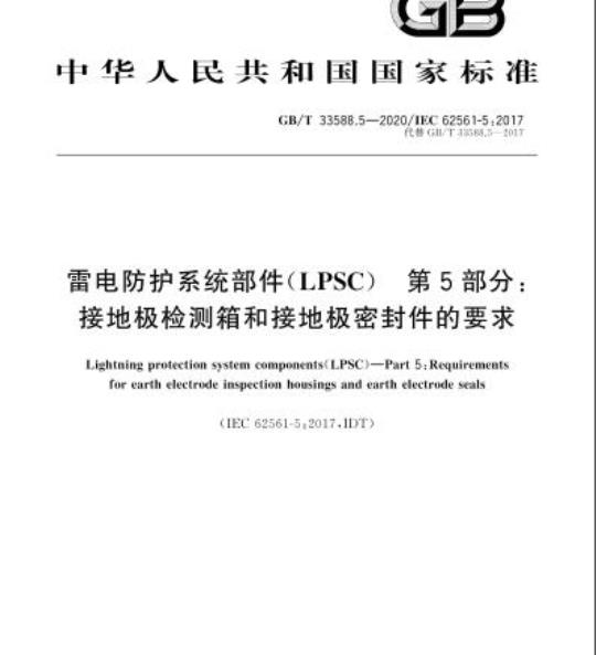GB/T 33588.5-2020.Lightning protection system components(LPSC)- Part 5:Requirements for earth electrode inspection housings and earth electrode seals.