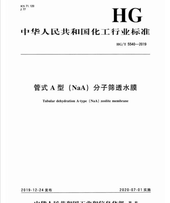 HG/T 5540适用于渗透气化(包括蒸气渗透)脱水用单通道和四通道A型分子筛膜,其他种类的分子筛膜可参考执行。