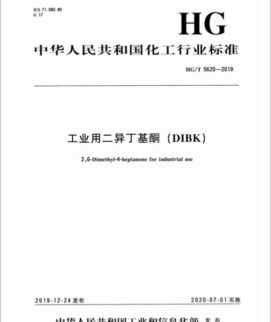 HG/T 5620适用于以丙酮为原料在催化剂作用下加氢缩合制得的工业用二异丁基酮(DIBK)。