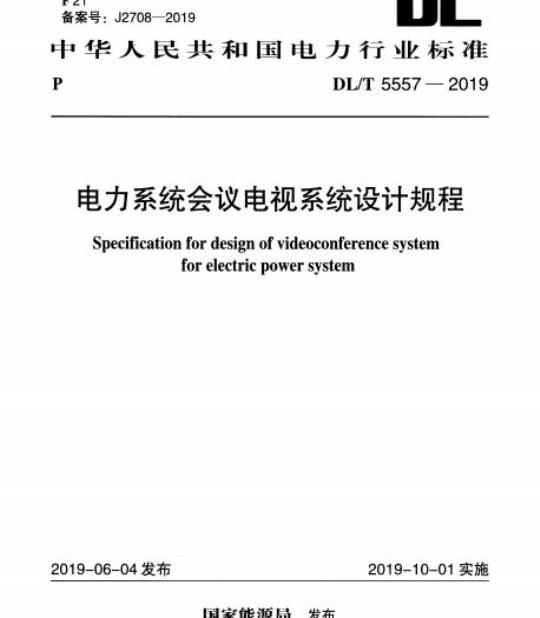 DL/T 5557-2019.Specification for design of videoconference system for electric power system.