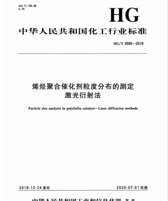 HG/T 5595-2019.Particle size analysis in polyilefin catalyst- -Laser diffracion methods.