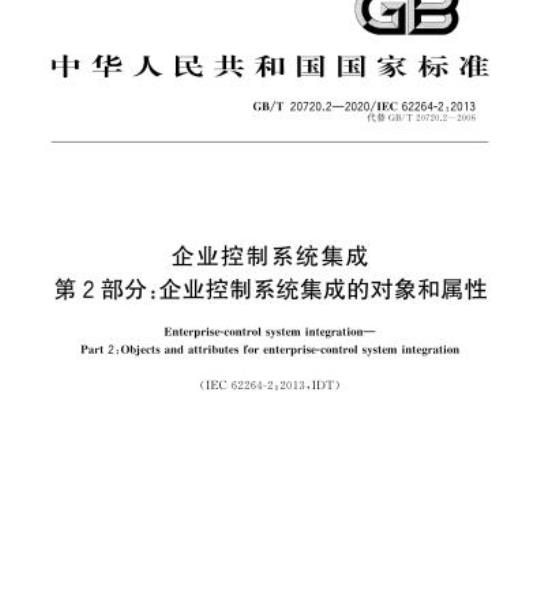 GB/T 20720.2-2020.Enterprise-control system integration-Part 2: Objects and attributes for enterprise-control system integration.