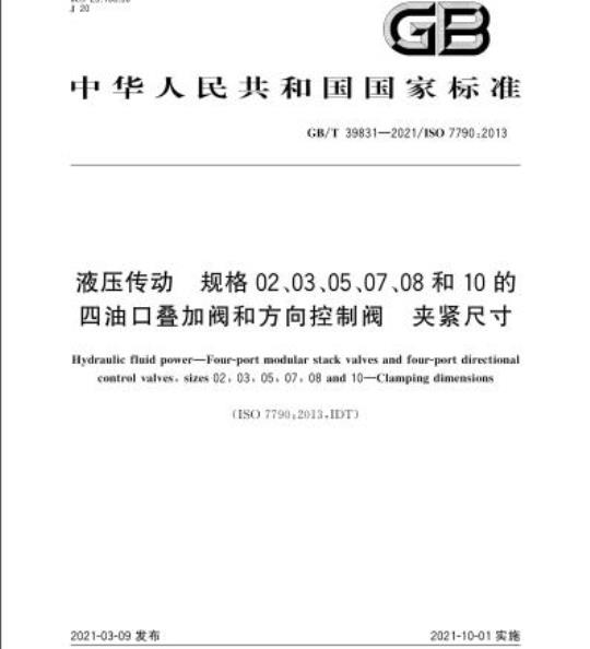 GB/T 39831适用于目前常用工业设备的四油口叠加阀和四油口方向控制阀的夹紧尺寸。