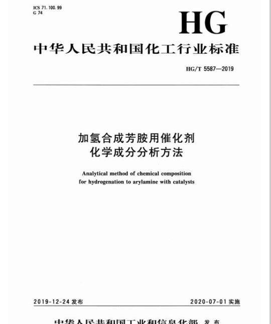 加氢合成芳胺用催化剂化学成分分析方法HG/T5587—2019
