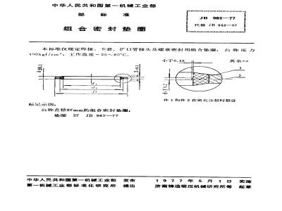 本标准仅规定焊接、卡套、扩口管接头及螺塞密封用组合垫圈,公称压力400kgf/cm2,工作温度-25~80℃。 JB/T 982-1977 组合密封垫圈 JB/T982-1977 标准下载解压密码:www.bzxz.net